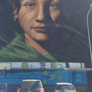 Il primo murales, dal nome “Ael. Tutt’egual song’e criature”, è stato realizzato dallo street artist napoletano Jorit AGOch, la cui arte si concentra esclusivamente sulla raffigurazione realistica del volto umano in una ritrattistica il cui segno distintivo sono le due strisce rosse, che qui marchiano le guance del viso timidamente sorridente di Ael in segno dell’appartenenza ad una unica e millenaria tribù, quella umana. Il murales venne realizzato per celebrare la Giornata Internazionale dei Rom, Sinti e Caminanti, assumendo un valore fortemente simbolico, laddove proprio a Ponticelli, nel 2008, venne bruciato l’intero campo rom locale, in una sorta di pogrom avvallato dalla Camorra.