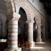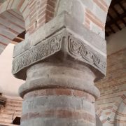 La pieve si presenta oggi a forma basilicale a tre navate absidate; la navata centrale è delimitata, su entrambi i lati, da cinque massicce colonne circolari in mattoni e pietra più due semicolonne addossate alla facciata e all’abside. Le colonne sono sormontate da capitelli lapidei tutti differenti l’uno dall’altro: alcuni sono privi di ornato e presentano soltanto qualche semplice modanatura; altri sono arricchiti da bassorilievi che raffigurano arabeschi, intrecci e foglie; altri ancora, i più particolari, contengono figure di animali, anche fantastici, volti e busti umani. I capitelli, così come la massiccia croce di calcare bianco posta nella lunetta dell’ingresso principale, richiamano, anche se in forme più rozze, motivi ornamentali longobardi e bizantini.