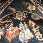Il motivo della sigillatura della cappella è ignoto, verosimilmente è legato al soggetto dei cicli di affreschi che decorano le pareti. Le rappresentazioni, infatti, attingono simbologia ed episodi non dai quattro vangeli canonici ma dai testi apocrifi, considerati contrari all’ortodossia cattolica dopo il Concilio di Trento (1545-1563). Alcune di queste iconografie, dunque, potrebbero essere state considerate eretiche. Ad esempio, la Trinità viene rappresentata trifronte, iconografia condannata dal Concilio perché ritenuta mostruosa e riconducibile a Cerbero, il cane infernale. Un’altra rappresentazione inusuale è quella del serpente che abbandona il coperchio del sepolcro di Cristo: la comune personificazione del male è qui metafora positiva di rigenerazione. Con la resurrezione, l’umanità si sarebbe mondata del peccato originario, proprio come un serpente si libera della vecchia pelle dopo la muta.